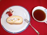 フルーツいっぱいロールケーキ と紅茶 です。