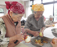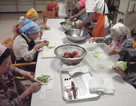 皆さん、エプロンにバンダナに、