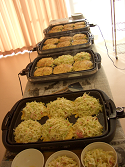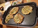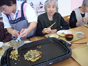 目の前でお好み焼きをたっくさん焼いて、 焼いて
