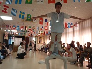 お馴染みの手持ち国旗から始まり、ラジオ体操。職員の組体操。