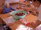 皆さんにお芋さんを包んでもらいます。