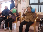 いつもより大きく動かして~、ボールを落とさないように回して回して~